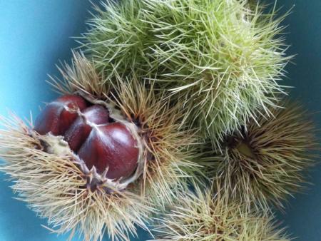 Der Name Kastanien ist übrigens irreführend. Die Bäume scheinen eher mit den Buchen verwandt zu sein. Die Früchte ähneln Buchäckern, sind nur größer und stacheliger.